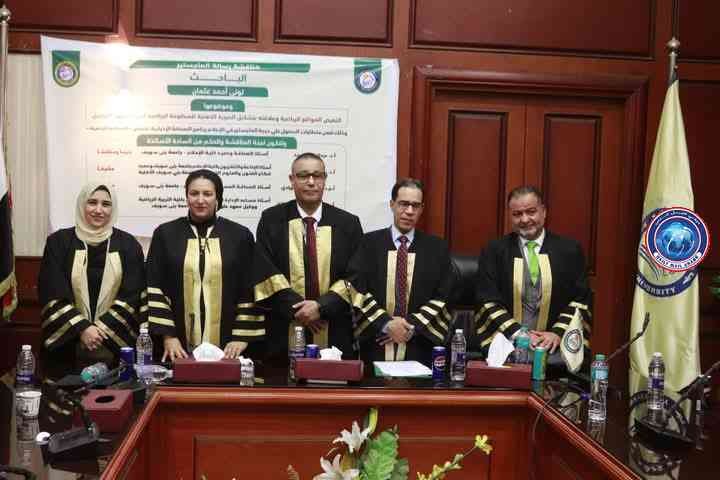 وأشرف على الرسالة كل من: الدكتورة رشا عادل، عميد قطاع الآداب والعلوم الإنسانية بجامعة بني سويف الأهلية، والدكتورة منى هاشم، أستاذ الصحافة المساعد ووكيل شؤون الطلاب السابق بكلية الإعلام بجامعة بني سويف، وضمت لجنة المناقشة: الدكتور عبد العزيز السيد، عميد كلية الإعلام، والدكتور حسام الهواري، أستاذ الإدارة الرياضية وعميد معهد علوم المسنين بجامعة بني سويف.