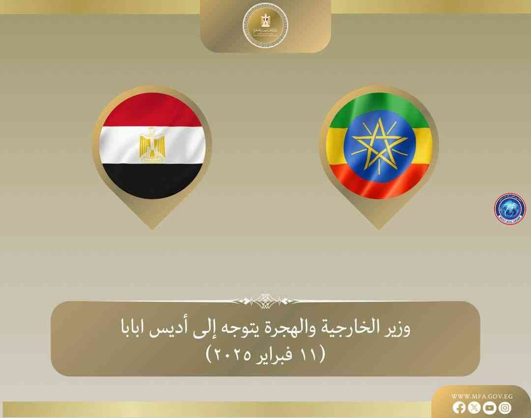 وزير الخارجية والهجرة يتوجه إلى أديس أبابا لترأس الوفد المصرى المشارك في اجتماعات المجلس التنفيذي للاتحاد الأفريقي.