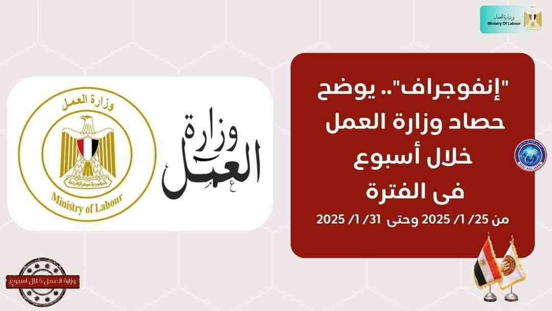 كتب.محمد محمودنشرت وزارة العمل اليوم السبت "فيديو" و"انفوجراف" عن حصاد "الوزراة" خلال الـ7 أيام الماضية..…