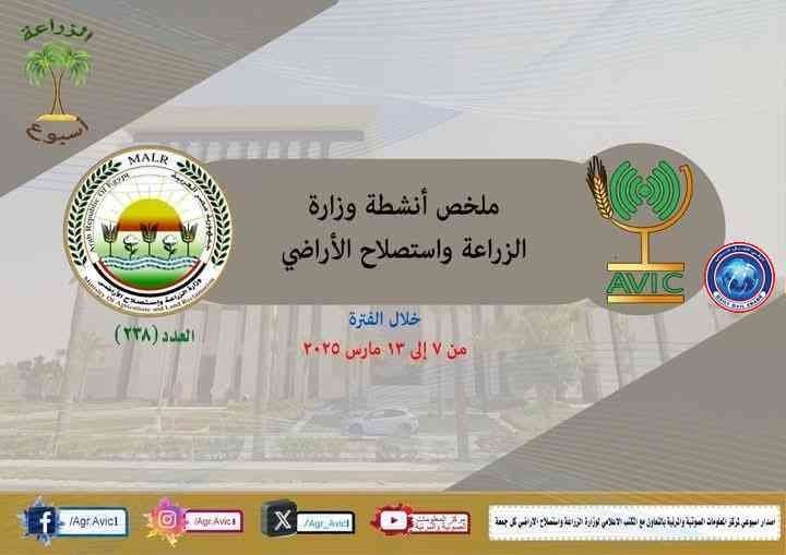 أصدر مركز المعلومات الصوتية والمرئية، التابع لوزارة الزراعة واستصلاح الاراضي، “الانفوجراف الاسبوعي” في نسخته رقم ٢٣٨ حول الحصاد الاسبوعي لأهم أنشطة الوزارة، خلال الاسبوع الماضي في الفترة من ٧ وحتى ١٣ مارس الجاري، وذلك بالتعاون مع المكتب الاعلامي للوزارة، كما أصدر المركز ايضا ملخصا بالفيديو، حول انشطة الوزارة خلال نفس الفترة.