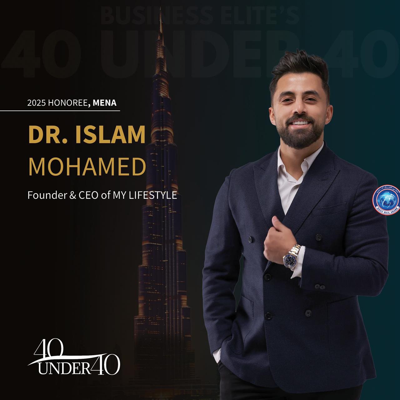 اختيار الدكتور إسلام محمد ضمن قائمة “40 Under 40” من Business Elite Awards كأحد أبرز القادة الشباب في العالم