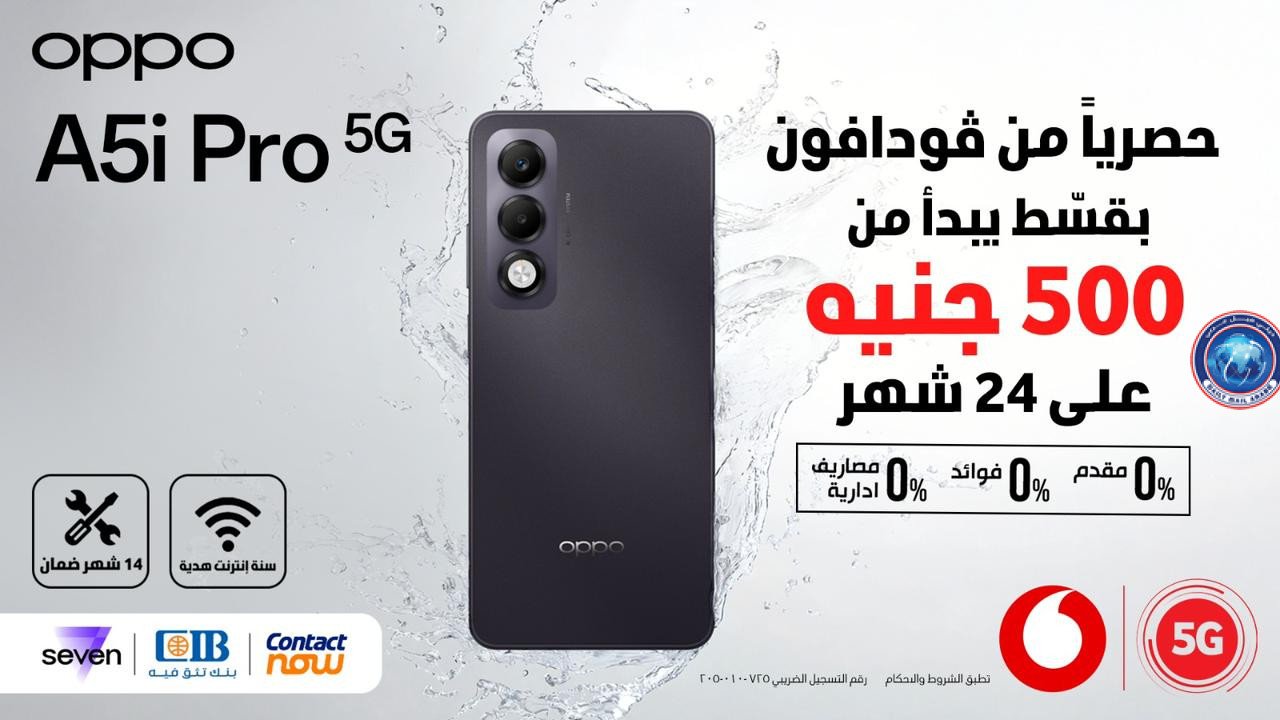 أوبو تطلق هاتفها الجديد OPPO A5i Pro 5G في مصر بالشراكة مع فودافون مصر